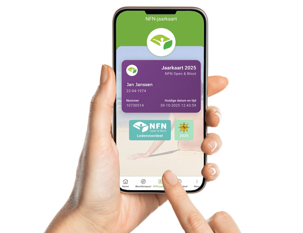Zolang je lid bent van NFN Open & Bloot en je contributie is betaald, staat je digitale jaarkaart altijd klaar in de NFN-app.