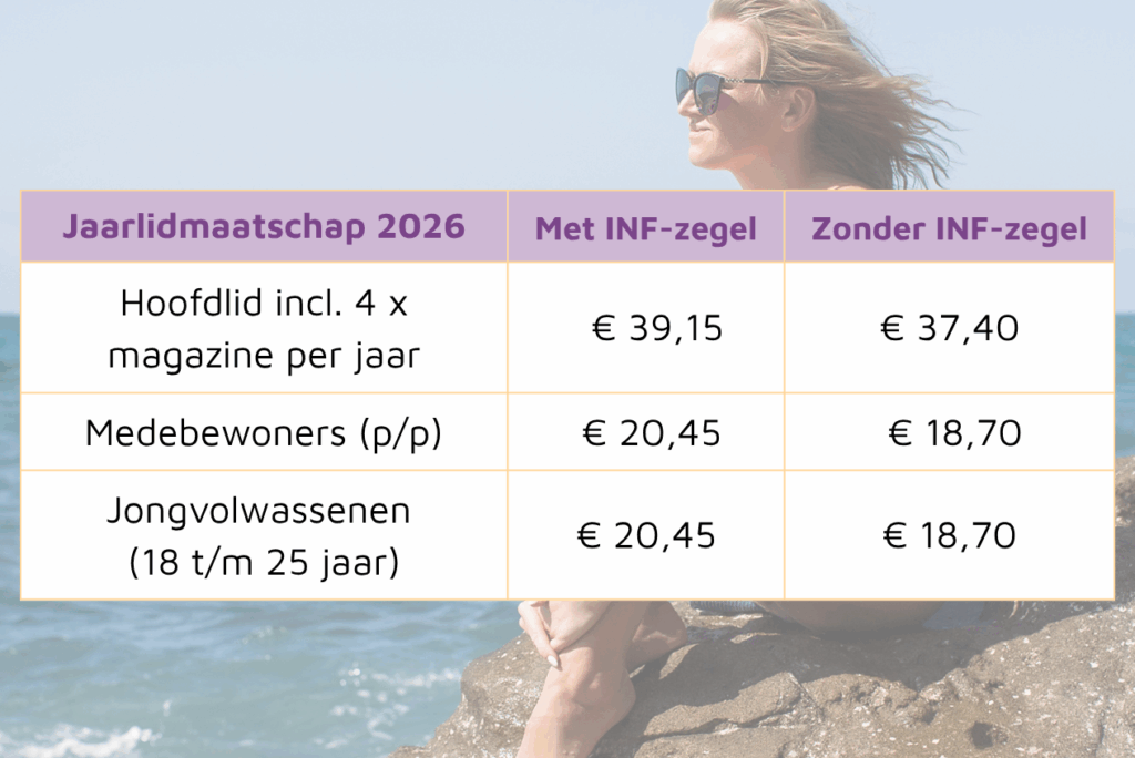 - Standaard lidmaatschap medebewoners – € 19,80 incl. INF-zegel of € 18,05 zonder INF-zegel